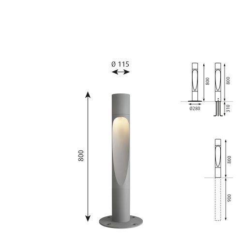 De Louis Poulsen Flindt Bollard 800 Vloerlamp is niet alleen een plaatje om te zien als hij uit staat: zet de lamp aan en hij is nóg mooier. Door de inham in de paal ontstaat namelijk er een bijzonder (asymmetrisch) lichteffect. Het brede licht van de lamp is naar beneden gericht, zodat jouw tuin, pad of terras goed wordt verlicht. De lamp is voorzien van een 3000K led lichtbron - deze lichtbron geeft warm wit licht. Deze versie is geaard en voorzien van een grondanker: deze stort je in bijv. beton.
